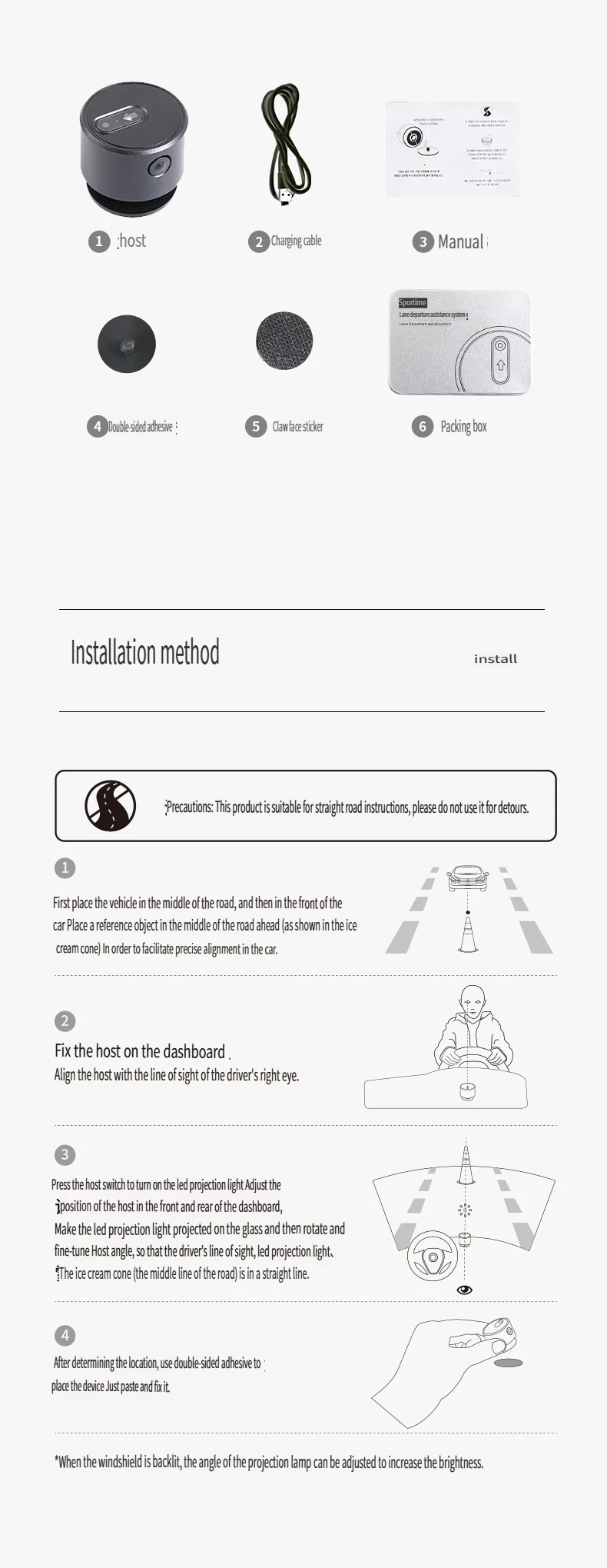 4.The lane departure assist device is USB charging,it can work for 8-12 hours after fully charging